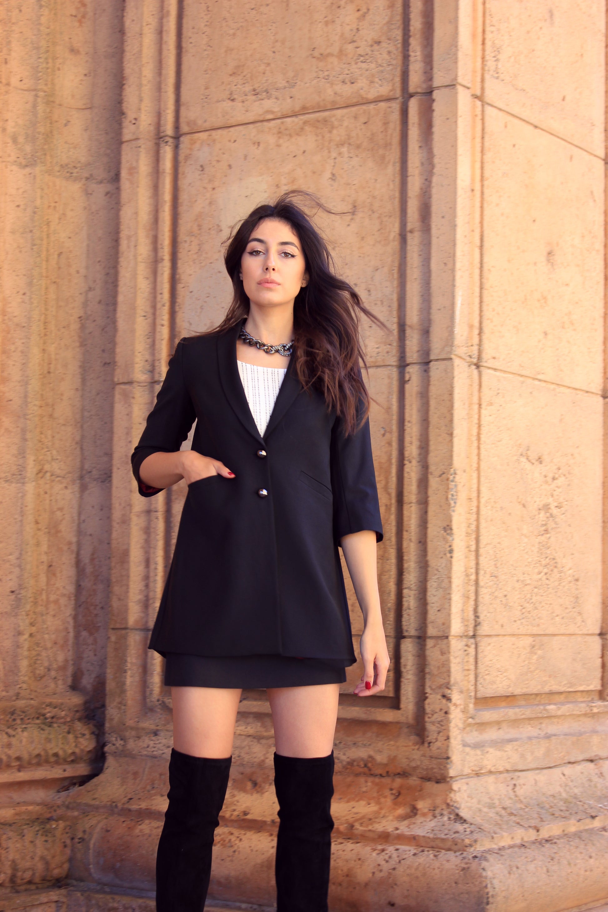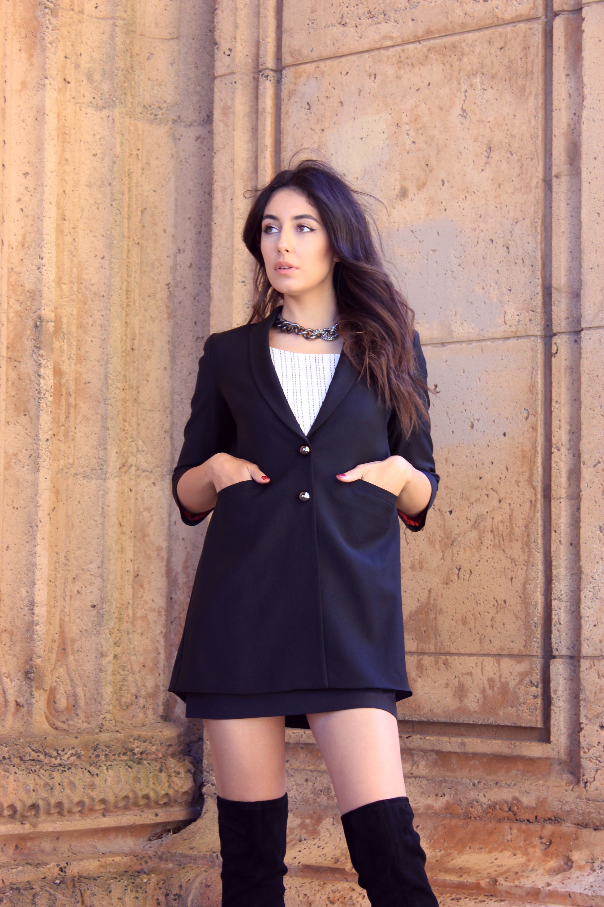 • Mini skirt with a lining of the same composition as the jacket