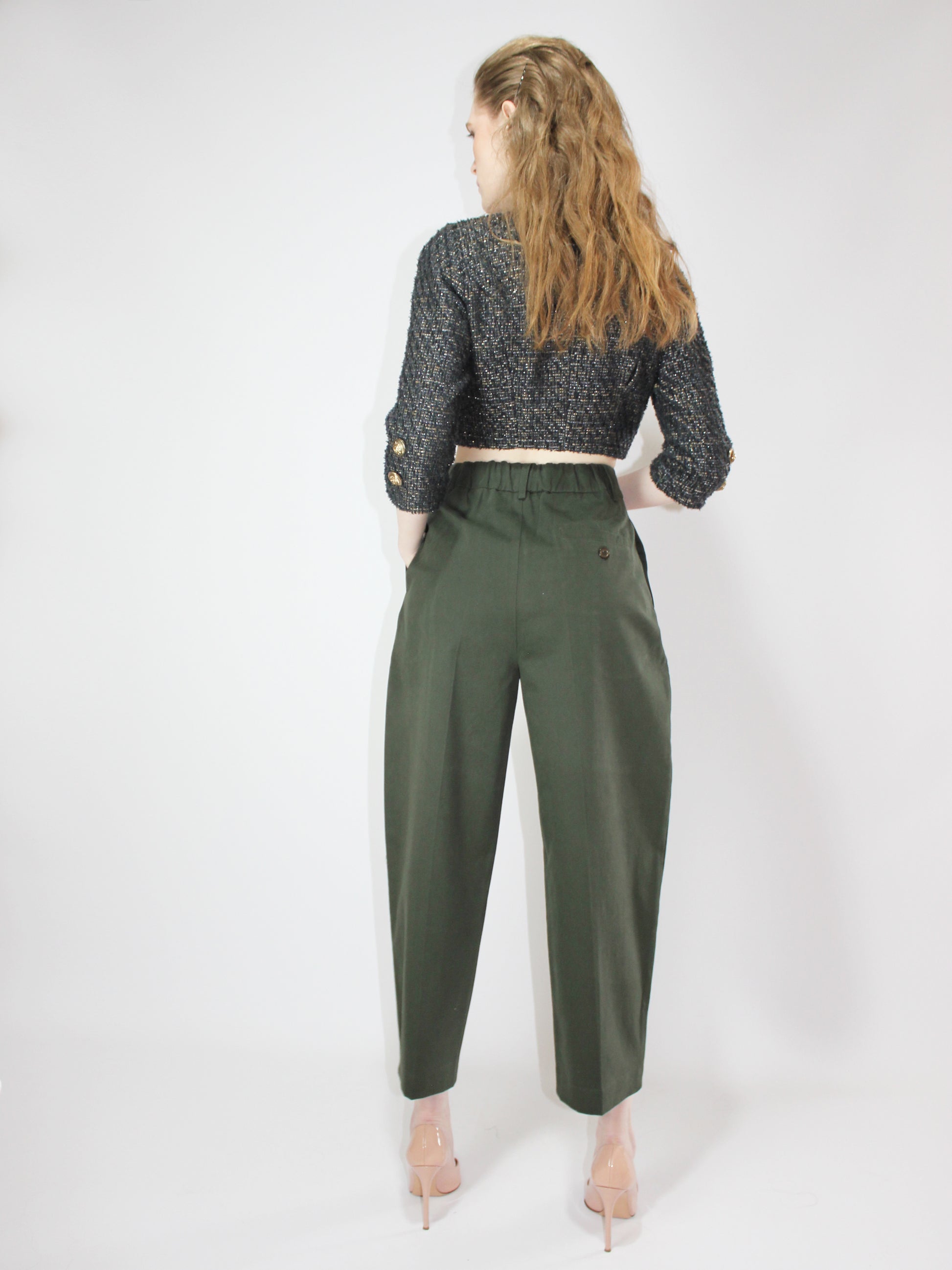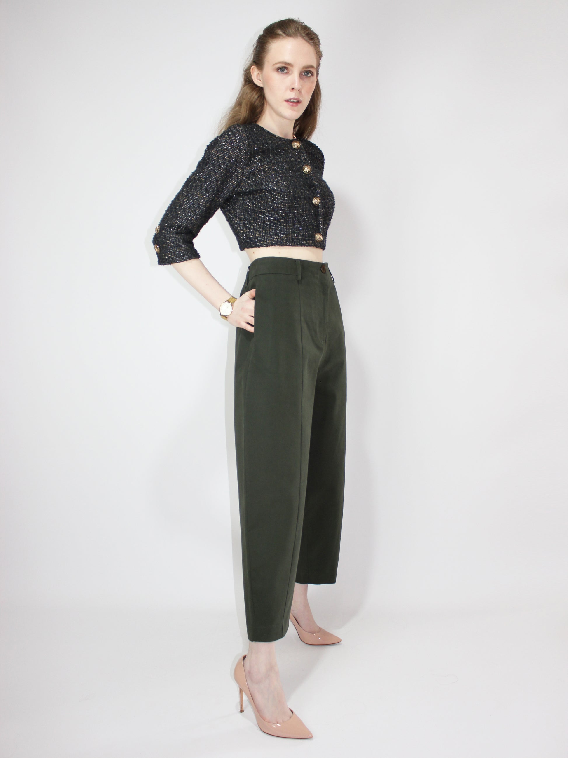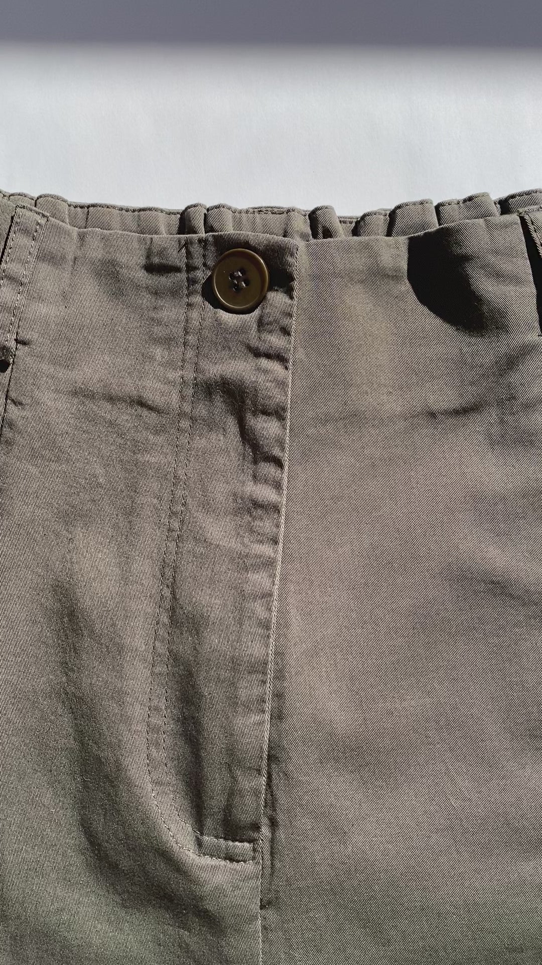 Longueur cheville, coupe taille haute, 2 poches avant, 1 vraie poche arrière. Disponible également en couleur bleu marine.