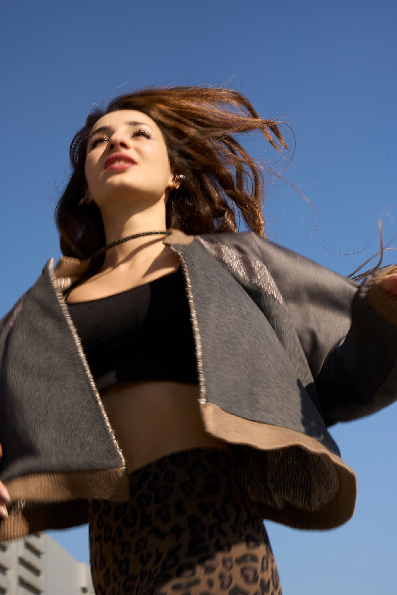 Exclusive bomber, the only 1 piece available. You can purchase the exclusive piece with 15% discount or order " Made to Measure " in any color of your preference according to your body size and height.