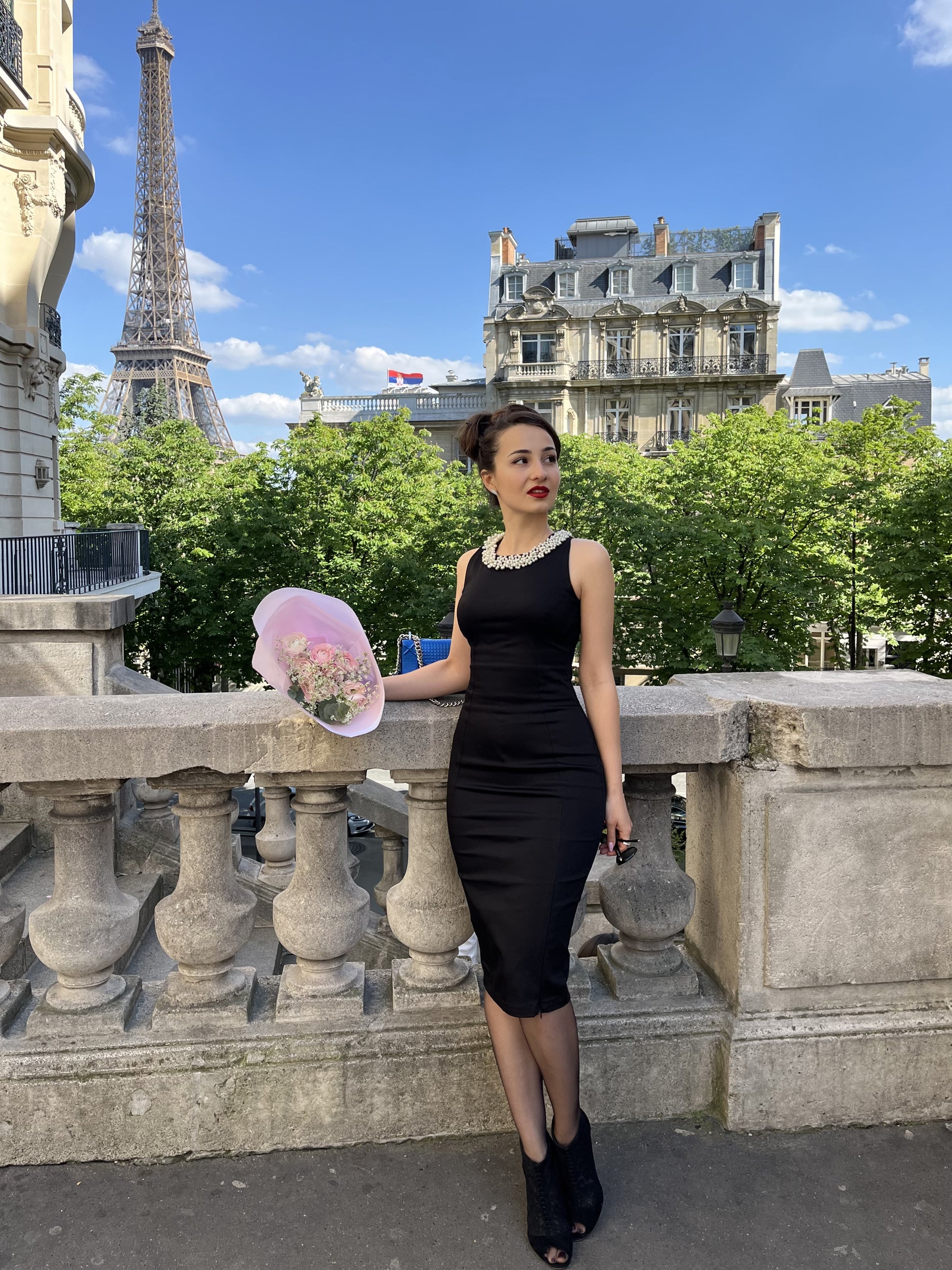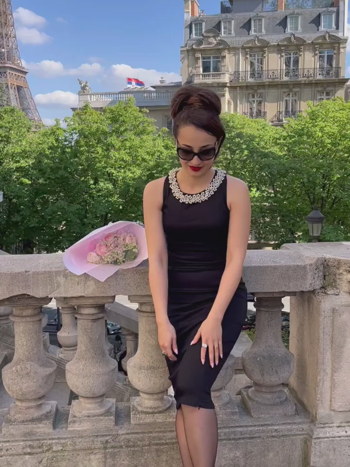 "Tiffany" Little Black Dress with Pearls