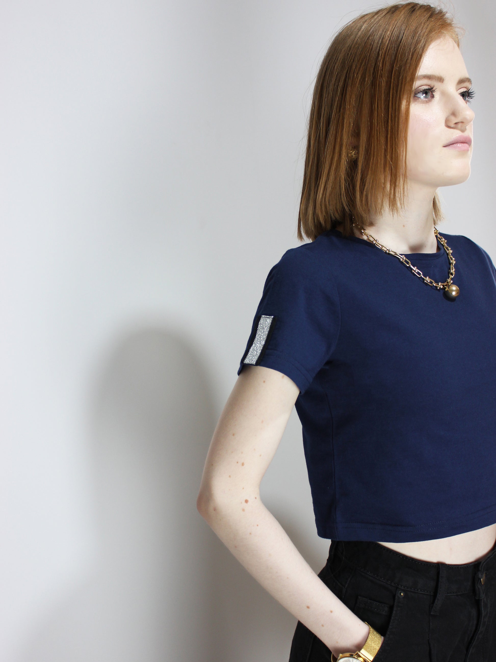 Футболка свободного кроя А-силуэта, декоративные серебристые ленты на рукавах. Круглый вырез горловины. Однотонный синий базовый элегантный укороченный топ на лето и весну. Укороченную футболку можно носить на прогулку, в поездку. Модная, молодежная, подойдет для девочек-подростков на каждый день! С этой летней футболкой можно создать множество образов! Незаменимая вещь в вашем гардеробе! Высококачественная турецкая ткань изделия прослужит вам долгие годы. Вы будете в восторге от качества! Французский шик в каждой детали. Приятных покупок!