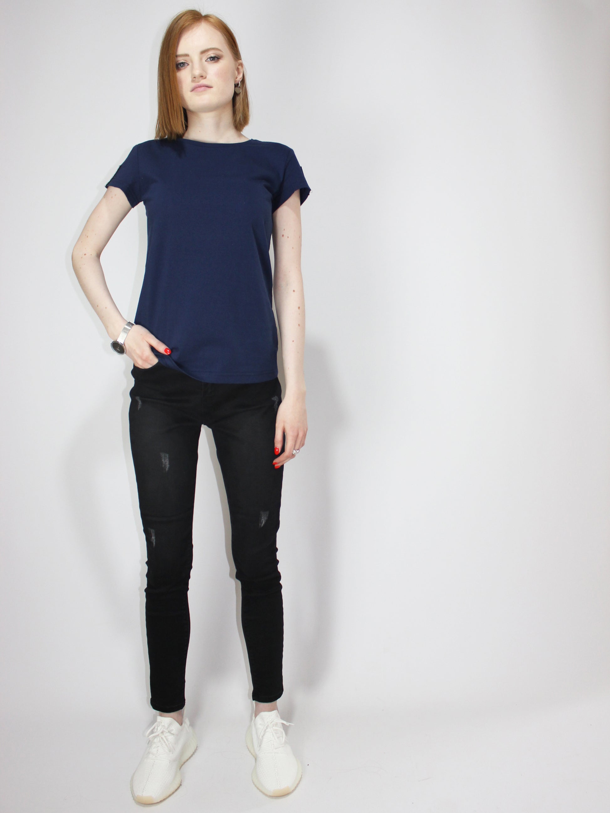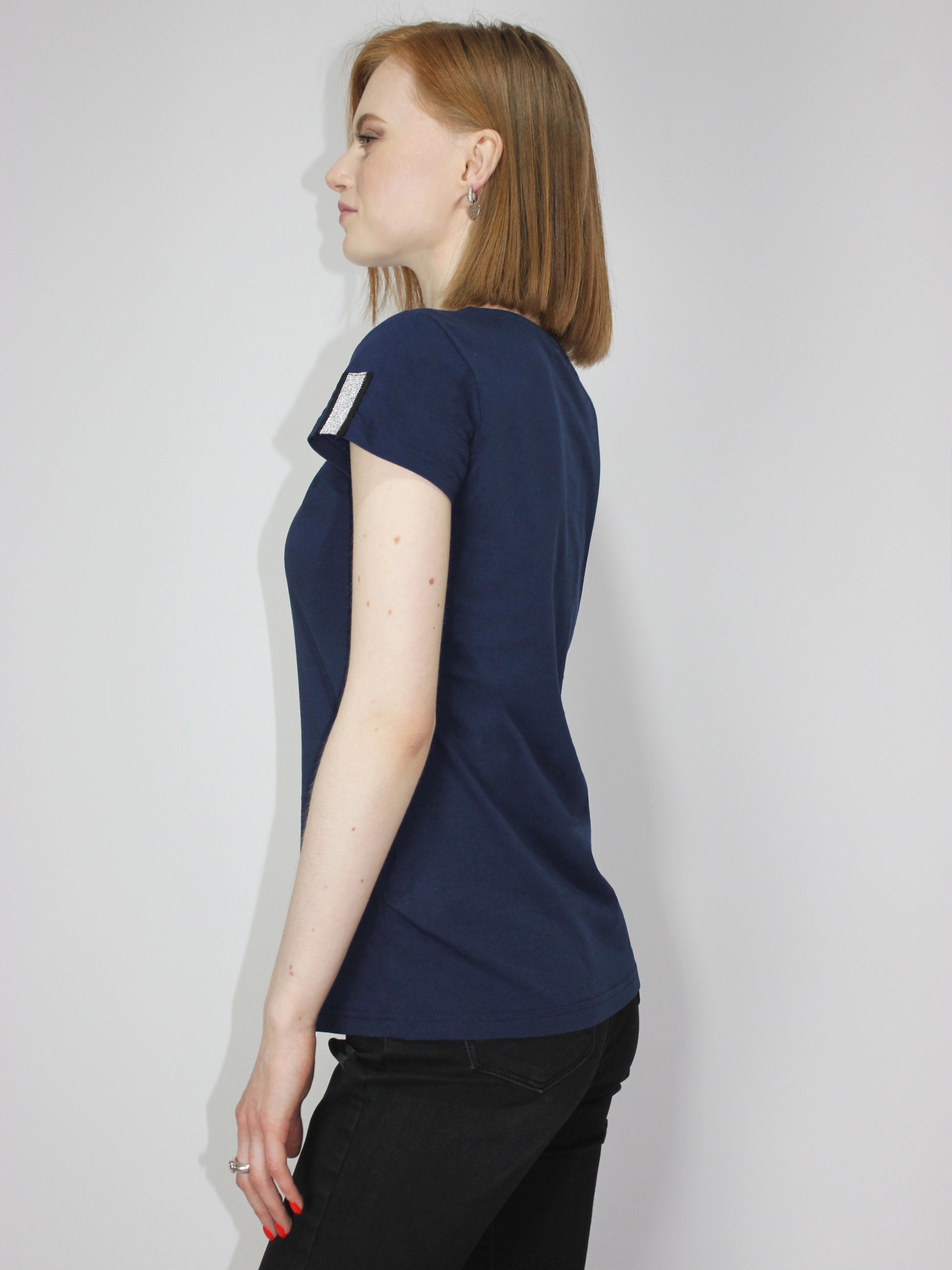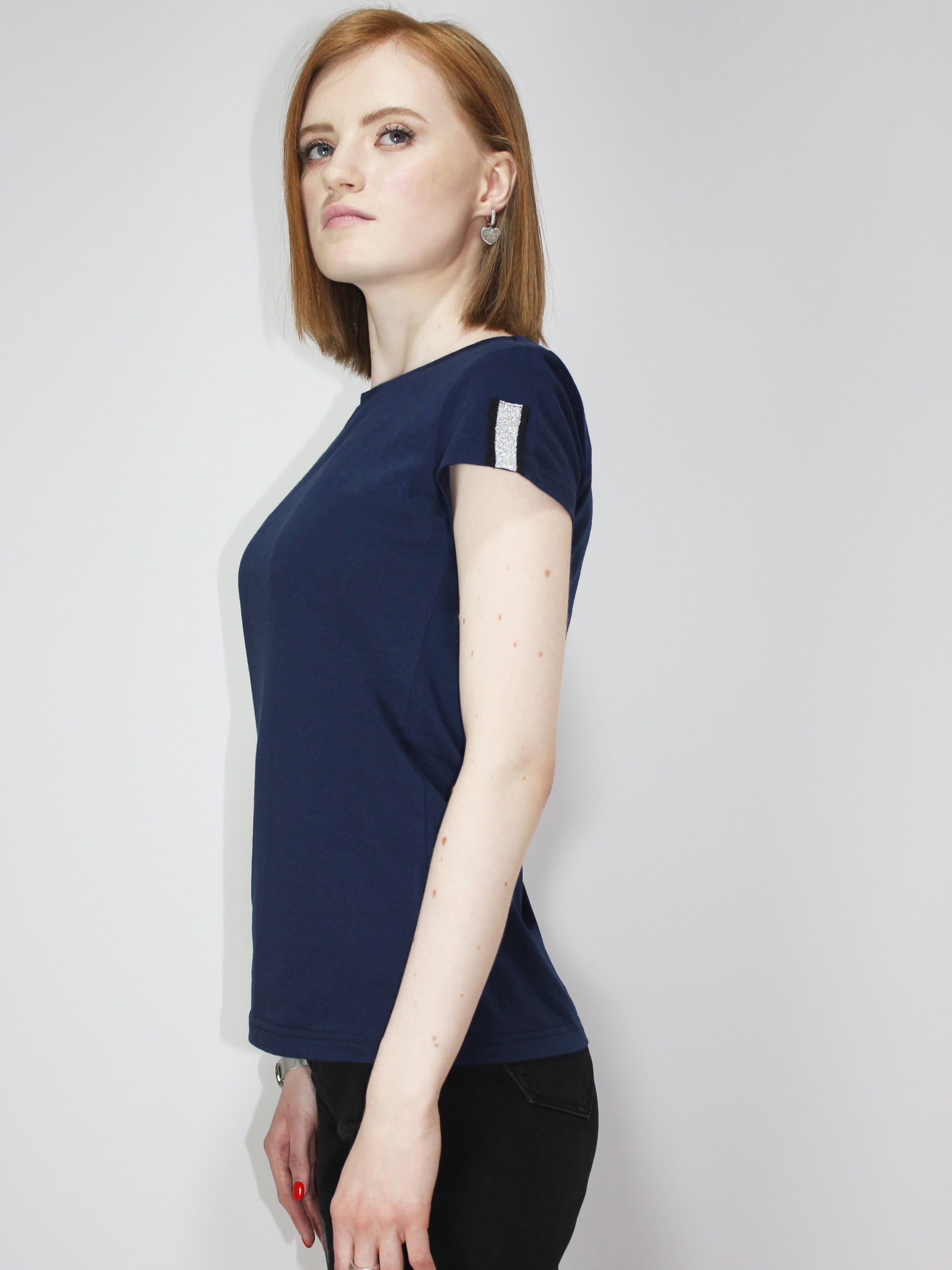 Футболка прямого кроя, декоративные серебристые ленты на рукавах. Круглый вырез горловины. Однотонная синяя базовая элегантная из натурального хлопка для лета и весны. Футболку можно носить на прогулку, в поездку. Модная, молодежная, подойдет для девочек-подростков на каждый день! С этой летней футболкой можно создать множество образов! Незаменимая вещь в вашем гардеробе! Высококачественная турецкая ткань изделия прослужит вам долгие годы. Вы будете в восторге от качества! Французский шик в каждой детали. Приятных покупок!