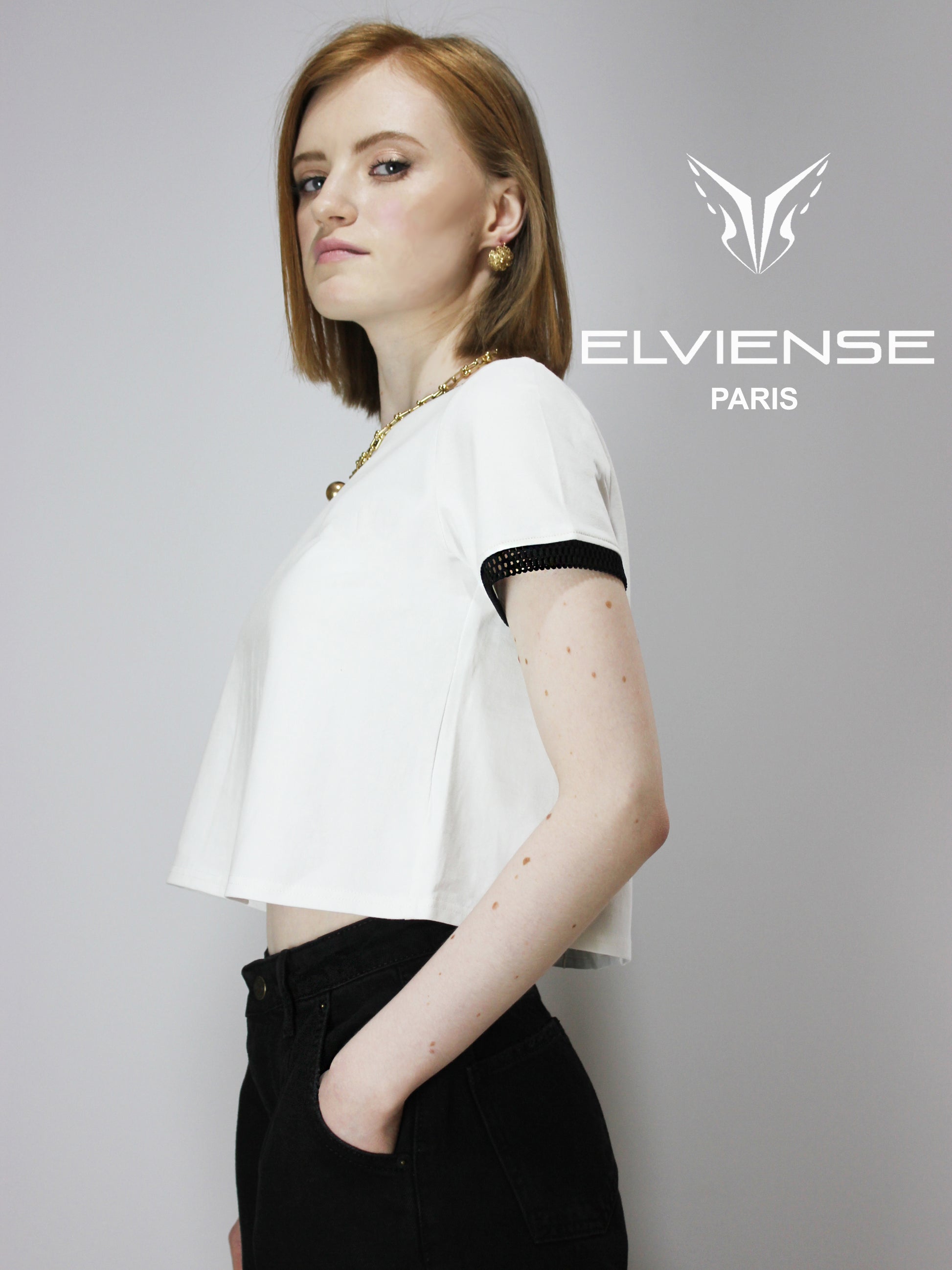 Футболка А-силуэта, расклешенная к низу. Элегантные черные сетчатые контрастные детали на коротких рукавах и горловине. Черная кайма не линяет и не оставляет цветных следов. Круглый вырез. Однотонный базовый белый элегантный укороченный топ для лета и весны. Модный, молодежный, подойдет для девочек-подростков на каждый день! С этой летней футболкой вы сможете создать множество образов! Незаменимая вещь в вашем гардеробе! Высококачественная турецкая хлопковая ткань прослужит вам долгие годы. Вы будете в восторге от качества! Французский шик в каждой детали.